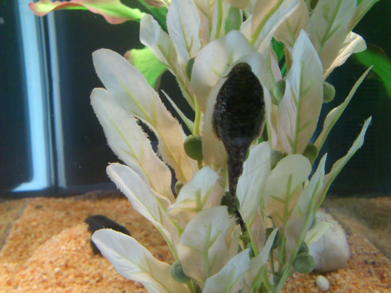 Este es uno de mis Plescostomus, al que yo llamo "chupon" esta limpiando una planta artificial.
